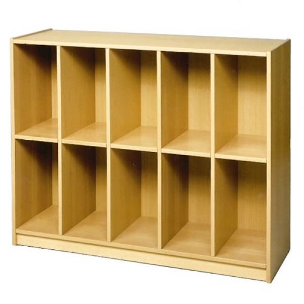 Das offene Regal bietet Stauraum für die Höhe von 2 Ordnern. Die 10 offenen Fächern sind mit 4 Mittelwänden getrennt und mit festen Böden ausgestattet.