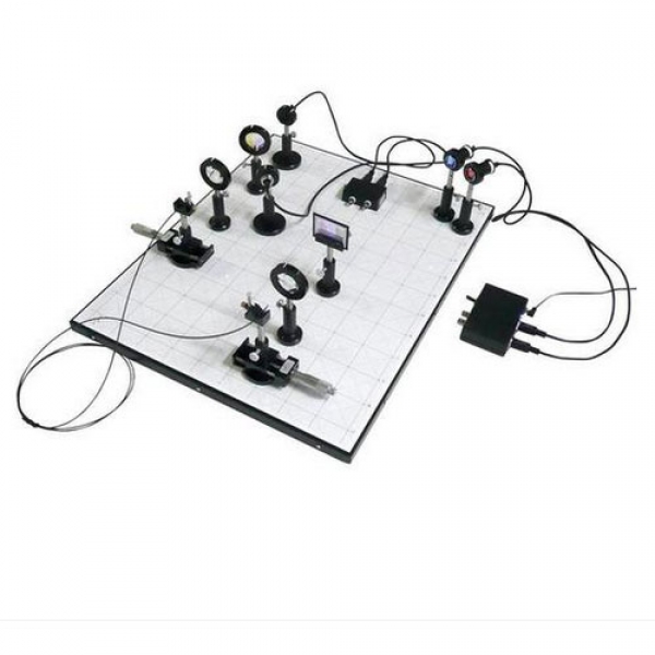 Vollständiges Experimentiersystem zur quantitativen Untersuchung der Optischen Übertragung eines Signals und des optischen Multiplexings und Demultiplexings. Für den zweidimensionalen optischen Aufbau hoher Präzision steht ein magnethaftender Tisch mit beschreibbarer Oberfläche und vorgezeichnetem Raster zur Verfügung.