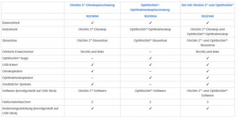 Lieferumfang und trainierbare Fähigkeiten von OtoSim 2™: