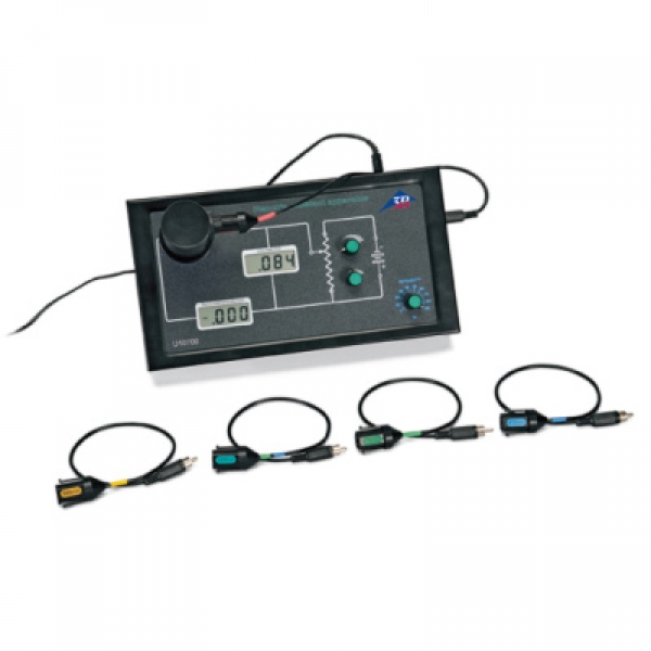 1 Grundgerät mit Photozelle, Voltmeter, Nanoamperemeter und Spannungsquelle für die Lichtquellen