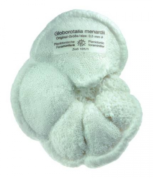 Globorotalia menardii, Original-Größe 0,5 mm Durchmesser, ca. 200fach vergrößert aus SOMSO-Plast®. In Zusammenarbeit mit Frau Dr. Barbara Donner, Forschungszentrum Ozeanränder Universität Bremen entwickelt.