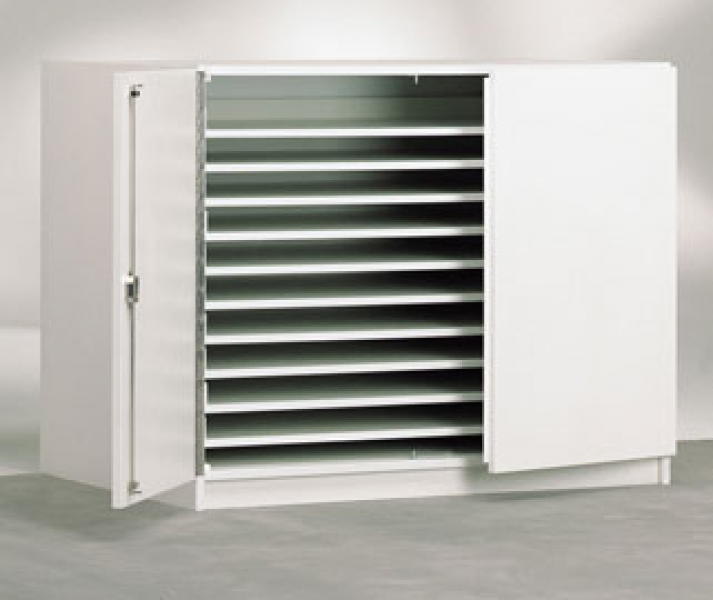 Planschrank für großzügige Bildformate, bis 125x90 cm. Mit 10 Auszügen.