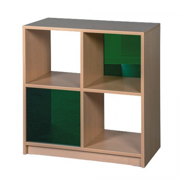 Fächer mit wechselseitig angeordneten farbigen Plexiglasrückwänden regen die Fantasie an und sind ein echter Hingucker.