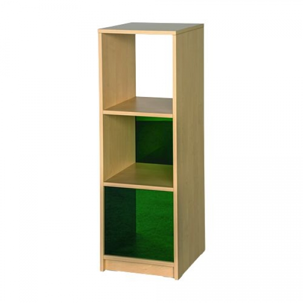 Fächer mit wechselseitig angeordneten farbigen Plexiglasrückwänden regen die Fantasie an und sind ein echter Hingucker.