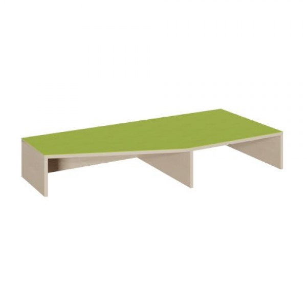 Unser Schrägenpodest verbindet Podeste der Tiefe 40 cm und 70 cm auf elegante Art und Weise. Zusätzlich bietet es auf der rechten Seite einem 66 cm tiefen Rollkasten einen Garagenplatz. Eine weitere geschlossene Nische entsteht auf der linken Seite unter der Linoleum-Oberplatte. Die 2 mm - ABS Sicherheitskanten an der Podestplatte aus 19 mm E 1-Feinspanplatte gewährleisten beanspruchungsfähige Bauteilkanten, die den täglichen Beanspruchungen ohne Weiteres standhalten. Die Linoleumoberfläche stellt eine strapazierfähige und pflegeleichte Oberfläche zur Verfügung, sie ist aus mehreren fröhlichen Farben wählbar. Mit dem Material Linoleum wird eine geräuschdämmende, kratzfeste, abwisch- und desinfizierbare Oberfläche angeboten. Das Dekor des Podestkorpus ist ebenfalls in mehreren Varianten verfügbar: bitte wählen Sie bei der Bestellung!