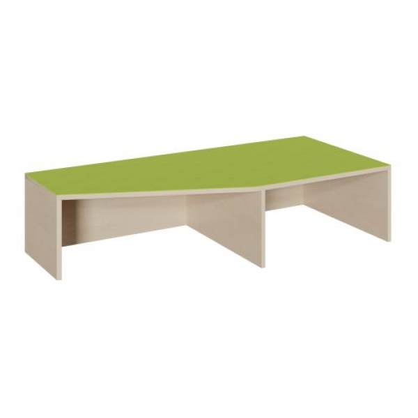Unser Schrägenpodest verbindet Podeste der Tiefe 40 cm und 70 cm auf elegante Art und Weise. Zusätzlich bietet es auf der rechten Seite einem 66 cm tiefen Rollkasten einen Garagenplatz. Eine weitere geschlossene Nische entsteht auf der linken Seite unter der Linoleum-Oberplatte. Die 2 mm - ABS Sicherheitskanten an der Podestplatte aus 19 mm E 1-Feinspanplatte gewährleisten beanspruchungsfähige Bauteilkanten, die den täglichen Beanspruchungen ohne Weiteres standhalten. Die Linoleumoberfläche stellt eine strapazierfähige und pflegeleichte Oberfläche zur Verfügung, sie ist aus mehreren fröhlichen Farben wählbar. Mit dem Material Linoleum wird eine geräuschdämmende, kratzfeste, abwisch- und desinfizierbare Oberfläche angeboten. Das Dekor des Podestkorpus ist ebenfalls in mehreren Varianten verfügbar: bitte wählen Sie bei der Bestellung!