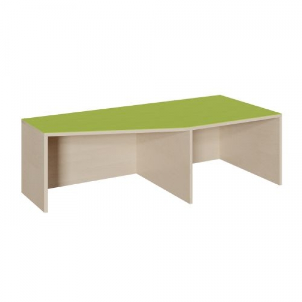 Unser Schrägenpodest verbindet Podeste der Tiefe 40 cm und 70 cm auf elegante Art und Weise. Zusätzlich bietet es auf der rechten Seite einem 66 cm tiefen Rollkasten einen Garagenplatz. Eine weitere geschlossene Nische entsteht auf der linken Seite unter der Linoleum-Oberplatte. Die 2 mm - ABS Sicherheitskanten an der Podestplatte aus 19 mm E 1-Feinspanplatte gewährleisten beanspruchungsfähige Bauteilkanten, die den täglichen Beanspruchungen ohne Weiteres standhalten. Die Linoleumoberfläche stellt eine strapazierfähige und pflegeleichte Oberfläche zur Verfügung, sie ist aus mehreren fröhlichen Farben wählbar. Mit dem Material Linoleum wird eine geräuschdämmende, kratzfeste, abwisch- und desinfizierbare Oberfläche angeboten. Das Dekor des Podestkorpus ist ebenfalls in mehreren Varianten verfügbar: bitte wählen Sie bei der Bestellung!