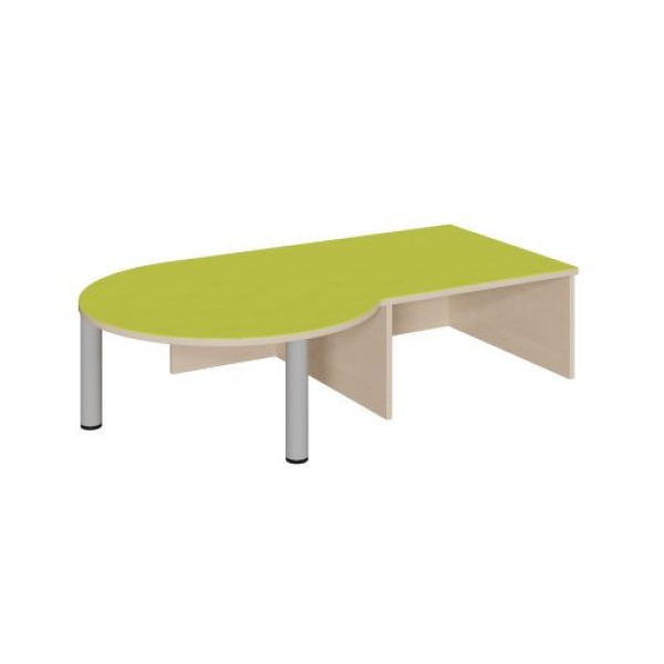 Das einseitige offene Podest mit linksseitigem Rundungsansatz hat eine linoleumbelegter Oberplatte, der auskragende Teil wird sicher von 2 Stahlrohrfüßen gestützt. In verschiedenen Podestanlagen oder -kombinationen bildet das Podest immer eine schöne Bühne. Auf der Längsseite bietet es rechtsseitig eine Nische für einen Rollkasten. Die 2 mm - ABS Sicherheitskanten an der Podestplatte aus 19 mm E 1-Feinspanplatte gewährleisten beanspruchungsfähige Bauteilkanten, die den täglichen Beanspruchungen ohne Weiteres standhalten. Die Linoleumoberfläche stellt eine strapazierfähige und pflegeleichte Oberfläche dar, sie ist aus mehreren fröhlichen Farben wählbar. Mit dem Material Linoleum steht eine geräuschdämmende, kratzfeste, abwisch- und desinfizierbare Oberfläche zur Verfügung. Das Dekor des Podestkorpus wird ebenfalls in mehreren Varianten angeboten: bitte wählen Sie bei der Bestellung! Die drei anderen Randbereiche des Podestelementes sind geschlossen. Die Anbindung zu anderen Podestelementen kann über zusätzliche Podestverbinder (unsere Artikel Nr. KLAM) sicher gestellt werden.