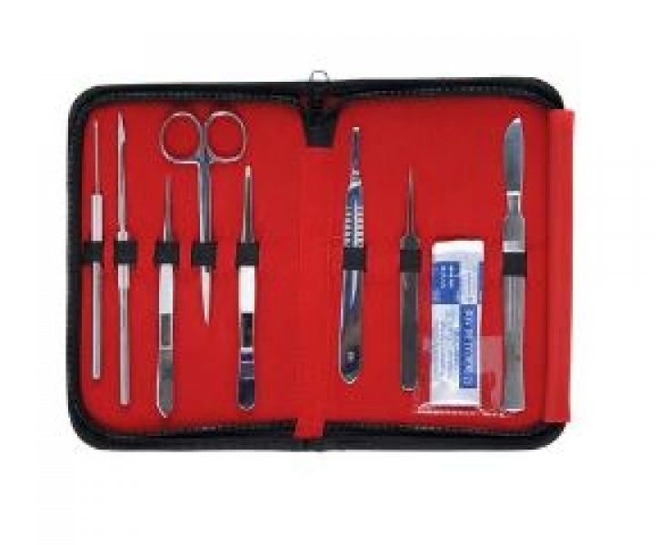 Umfangreiches Präparierbesteck in einem Kunstlederetui mit hochwertigen Edelstahlinstrumenten.