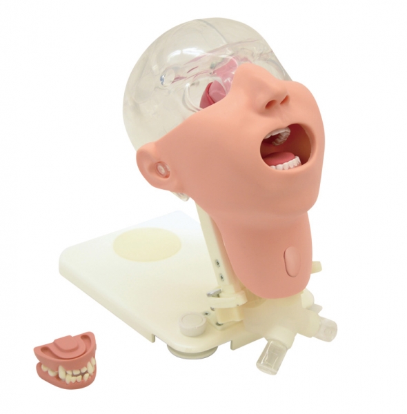 Die lebensechte Mundhöhle und das Gebiss mit Zahnerkrankungen bieten eine Übungsmöglichkeit der Mundpflege, nahe an der klinischen Realität.