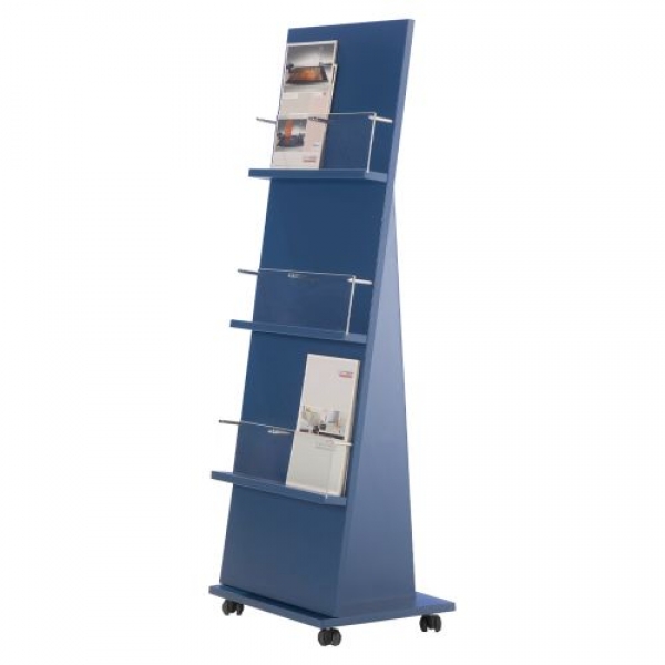 Dieser elegante, fahrbare Prospekt- und Zeitungsständer auf 4 stabilen Rollen, von denen 2 feststellbar sind, ist perfekt geeignet, um Ihre Informationsbroschüren und Zeitungen ordentlich und griffbereit aufzubewahren und perfekt zu präsentieren.