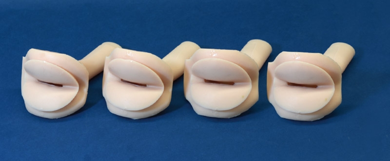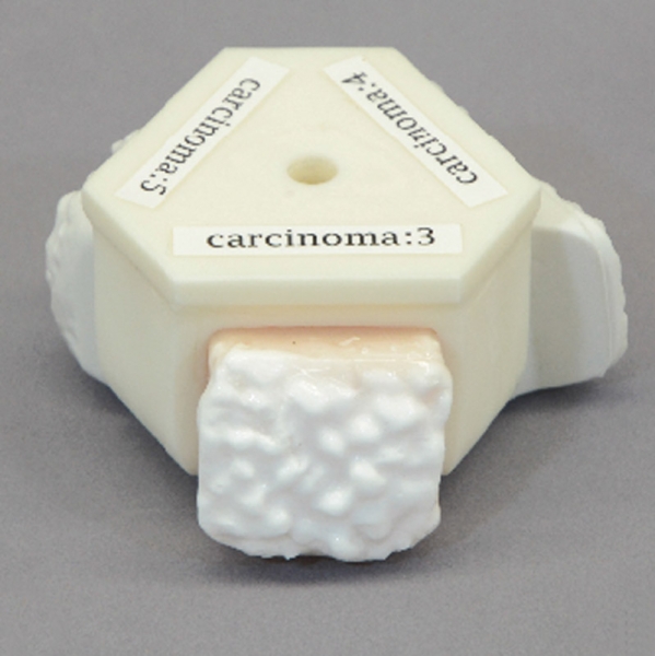 • Vier Rektumeinsätze: normal, kleines Karzinom, großes Karzinom, Polyp kombiniert mit kleinem Karzinom