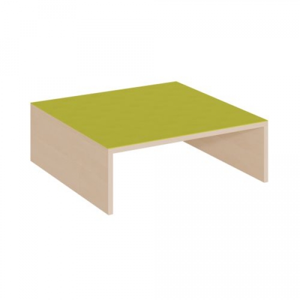 Das einseitig offene, quadratische Podest mit linoleumbelegter Oberplatte bietet in vielen Podestanlagen oder Podestkombinationen Platz für einen Rollkasten. Die 2 mm - ABS Sicherheitskanten an der Podestplatte aus 19 mm E 1-Feinspanplatte gewährleisten beanspruchungsfähige Bauteilkanten, die den täglichen Beanspruchungen ohne Weiteres standhalten. Die Linoleumoberfläche stellt eine strapazierfähige und pflegeleichte Oberfläche dar, sie ist aus mehreren fröhlichen Farben wählbar. Mit dem Material Linoleum steht eine geräuschdämmende, kratzfeste, abwisch- und desinfizierbare Oberfläche zur Verfügung. Das Dekor des Podestkorpus wird ebenfalls in mehreren Varianten angeboten: bitte wählen Sie bei der Bestellung! Die drei anderen Randbereiche des Podestelementes sind geschlossen.
