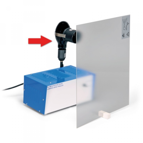 Betriebsgerät für Spektrallampen (1003537 – 1003546) einschließlich Lampengehäuse auf Stativstab.