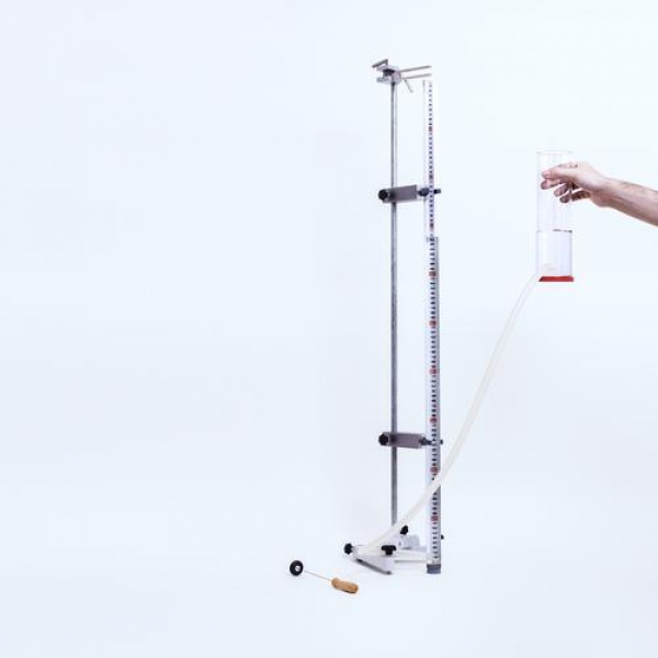 Der Gerätesatz besteht aus einem Resonanzrohr mit mm-Skala, das teilweise mit Wasser gefüllt wird und durch einen Schlauch mit einem Ausgleichgefäß verbunden ist.