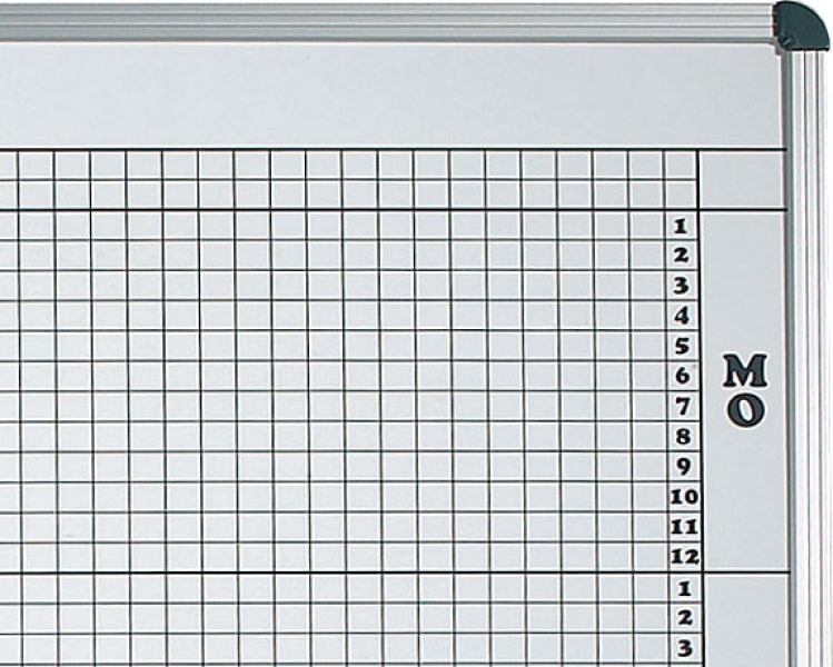Die Oberflächen der Plantafeln bestehen aus Stahlblech weiß mit schwarzem, eingebranntem Stundenplanraster und einem Aluminiumrahmen.