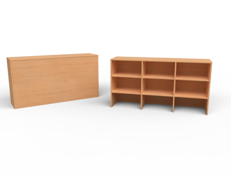 Sockelnischen-Raumteilerschrank, BxHxT 152x80x40 cmVorderseite: offen, 2 Trennwände, 3x1 verstellbarer Einlegeboden3x1 fester FachbodenRückseite: geschlossene Sichtrückwandmit offener Sockelnische für Rollkästen- Rollkästen nicht im Lieferumfang enthalten