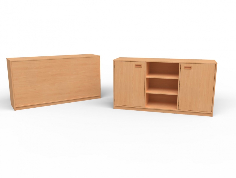 Raumteilerschrank, BxHxT 152x80x40 cm Vorderseite: links und rechts1 Tür, Muschelgriff, je 2 Einlegebödenmitte: offen, 2 Fachböden Rückseite: geschlossene Sichtrückwand