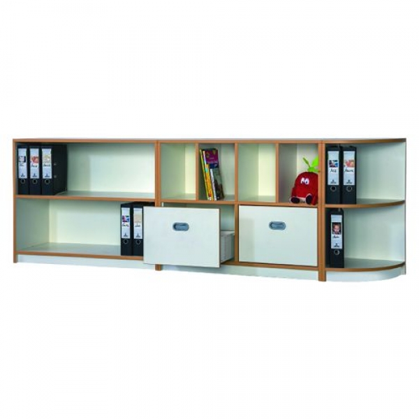Die zwei hohen Schubkästen bieten Platz für allerlei Spiel- und Lernutensilien.