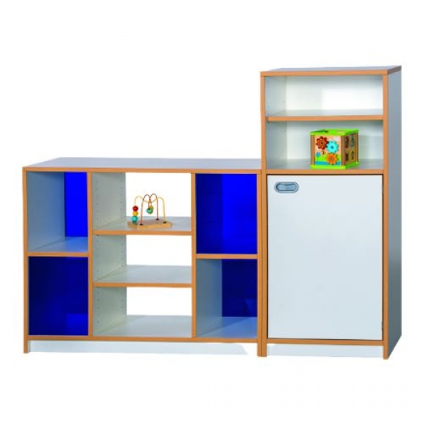 Als Raumteiler aufgestellt, ist das Regalsystem zur Abtrennung verschiedenster Gruppenraumbereiche geeignet.