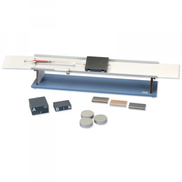 Reibungskörper mit unterschiedlicher Oberflächenbeschaffenheit erlauben die Untersuchung der Reibung verschiedener Materialkombinationen und Reibungsverhältnisse. Die einstellbare Neigung der Reibungsbahn ermöglicht die Messung der Reibungskraft in Abhängigkeit von der Normalkraft.