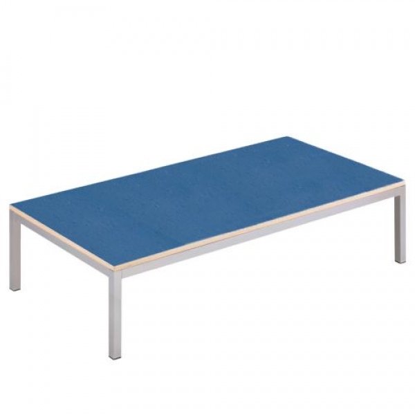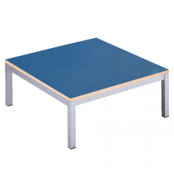 Die beiden Riesenpodeste dieser kleinen Produktfamilie sind immer 40 cm hoch, die Kantenlängen betragen 1 m oder in der Rechteckvariante 2 x 1 m. Durch die leichte Bauweise können sie sehr bequem für unterschiedlichen Anforderungen des Gruppenlebens umgruppiert werden. Sollte der Fußbodenunebenheiten aufweisen oder zwischen benachbarten Podestenflächen Höhenunterschiede auftreten, können die Differenzen sehr einfach durch die immer vorhandenen Stellfüße ausgeglichen werden. Aus diesem Grund steht das Stahlgestell umlaufend geringfüging von der Plattenkante zurück.