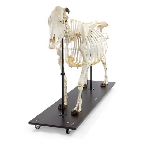 Dieses beeindruckende Exemplar eines echten Kuhskeletts wird auf einem Holzsockel montiert, um es im Klassenzimmer leicht ausstellen zu können.