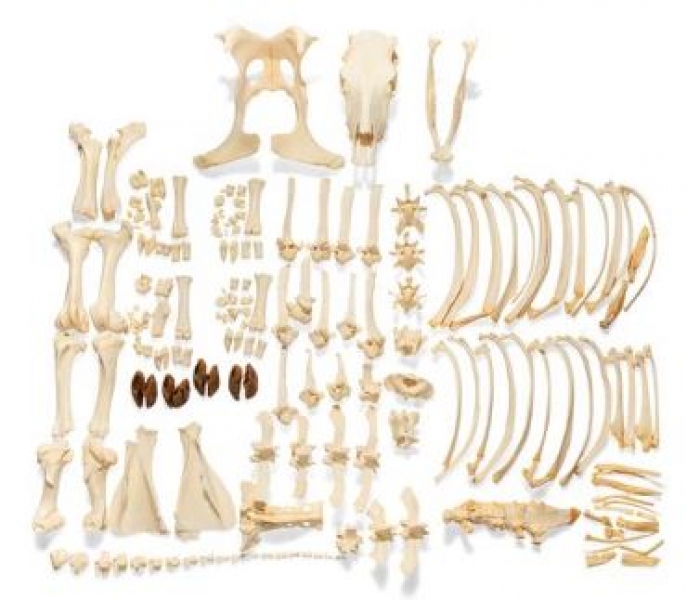 Komplettes und nicht montierte Skelettknochen ohne Vorbohrungen und -montage. Kleine Knochen können lose enthalten sein. Es liegt keine Aufbau- oder Montageanleitung bei.