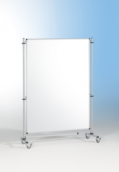 Doppelseitig mit weißer Stahlemailleoberfläche, zum Beschreiben mit trocken abwischbaren Whiteboardmarkern, magnethaftend. (inklusive 4 Einhängeschlitten, ohne Stative)