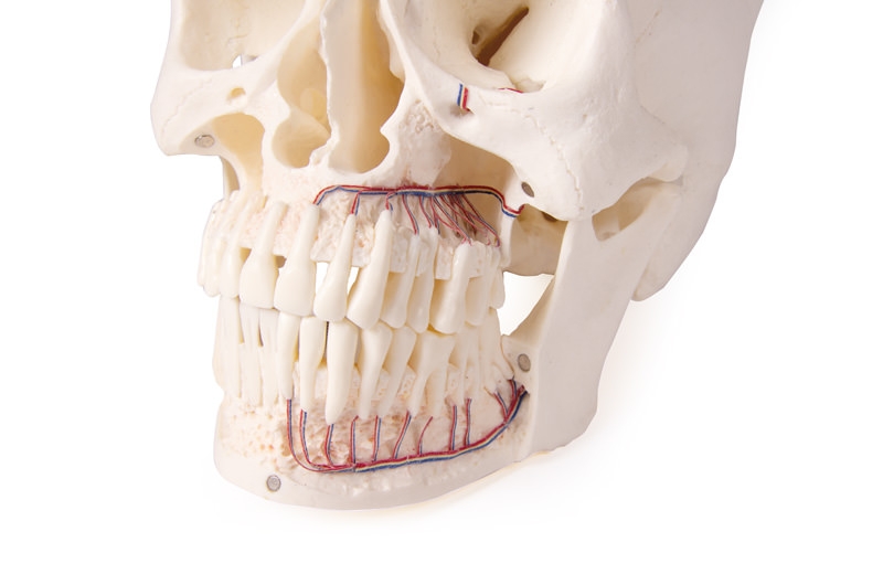 Der Schädel ist nicht nur geeignet als perfektes Hilfsmittel für das Erlernen der Anatomie, sondern auch als Erklärungshilfe für die Kieferchirurgie und Implantologie.