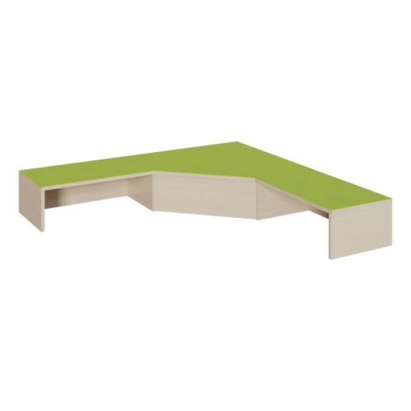 Durch seine linoleumbelegte Oberplatte ergänzt es die Möglichkeiten einer Gestaltung von Podestanlagen oder Podestkombinationen. Die 2 mm - ABS Sicherheitskanten an der Podestplatte aus 19 mm E 1-Feinspanplatte gewährleisten beanspruchungsfähige Bauteilkanten, die den täglichen Beanspruchungen ohne Weiteres standhalten. Die Linoleumoberfläche stellt eine strapazierfähige und pflegeleichte Oberfläche dar, sie ist aus mehreren fröhlichen Farben wählbar. Mit dem Material Linoleum steht eine geräuschdämmende, kratzfeste, abwisch- und desinfizierbare Oberfläche zur Verfügung. Das Dekor des Podestkorpus wird ebenfalls in mehreren Varianten angeboten: bitte wählen Sie bei der Bestellung!