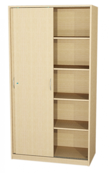Schrank, BxHxT 120x190x50 cm 2 Schiebetüren, abschließbar, Segmentbogengriffe ( RM 128 mm ) verchromt matt, 4 Einlegeböden