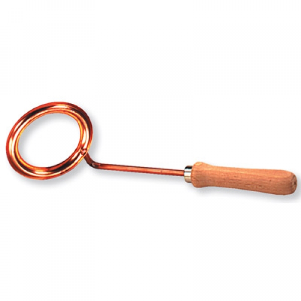 Kreisförmige Kupferrinne mit Isoliergriff zur Demonstration des Prinzips des Induktionsschmelzens bei Verwendung als Sekundärspule zum Transformatorkern D (Artikelnummer: 1000976).
