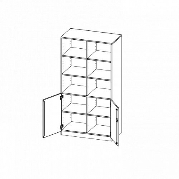 Alle Kombischränke werden aus melaminharzbeschichteter E1 Feinspanplatte gefertigt, die FSC zertifiziert und formaldehydfrei sind. Als Kanten verwenden wir besonders robuste 2 mm starke ABS Kanten, die unter hoher Temperatur fest verleimt werden. Bitte wählen Sie Ihr Wunschdekor aus unserer Dekorpalette aus. Die Einlegeböden sind im Raster von 32 mm verstellbar. Unsere hochwertigen Bodenträger verfügen über einen "Ausziehstop", so wird verhindert, dass Böden mit Inhalt darauf aus dem Regal oder Schrank rutschen können. Die Türen lassen sich dank 270° öffnender Scharniere an den Korpus anlegen. Sie sind mit einem Schloss verschließbar. An den Türen befindet sich eine Staublippe.