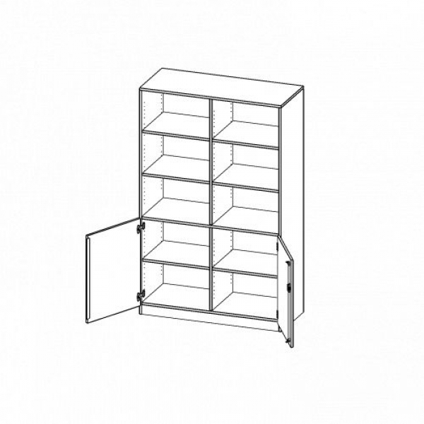 | | Schrank, 5 Ordnerhöhen, Türen unten (2 OH), oben 3 offene FächerVersandkostenfreie Lieferung! 2 Türen, abschließbar, B/H/T: 120x190x40 cm
