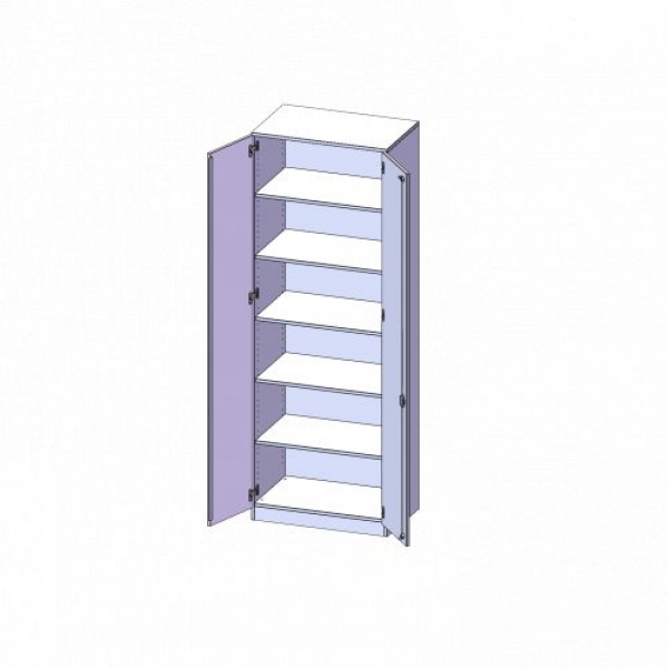 Alle Schränke werden aus melaminharzbeschichteter E1 Feinspanplatte gefertigt, die FSC zertifiziert und formaldehydfrei sind. Als Kanten verwenden wir besonders robuste 2 mm starke ABS Kanten, die unter hoher Temperatur fest verleimt werden. Bitte wählen Sie Ihr Wunschdekor aus unserer Dekorpalette aus. Die Einlegeböden sind im Raster von 32 mm verstellbar. Unsere hochwertigen Bodenträger verfügen über einen "Ausziehstop", so wird verhindert, dass Böden mit Inhalt darauf aus dem Regal oder Schrank rutschen können. Die Türen lassen sich dank 270° öffnender Scharniere an den Korpus anlegen. Sie sind mit einem Schloss verschließbar. An den Türen befindet sich eine Staublippe.