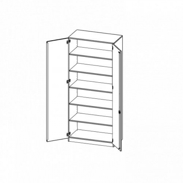 Alle Schränke werden aus melaminharzbeschichteter E1 Feinspanplatte gefertigt, die FSC zertifiziert und formaldehydfrei sind. Als Kanten verwenden wir besonders robuste 2 mm starke ABS Kanten, die unter hoher Temperatur fest verleimt werden. Bitte wählen Sie Ihr Wunschdekor aus unserer Dekorpalette aus. Die Einlegeböden sind im Raster von 32 mm verstellbar. Unsere hochwertigen Bodenträger verfügen über einen "Ausziehstop", so wird verhindert, dass Böden mit Inhalt darauf aus dem Regal oder Schrank rutschen können. Die Türen lassen sich dank 270° öffnender Scharniere an den Korpus anlegen. Sie sind mit einem Schloss verschließbar. An den Türen befindet sich eine Staublippe.