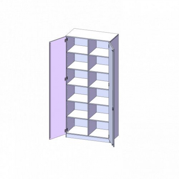 Alle Schränke werden aus melaminharzbeschichteter E1 Feinspanplatte gefertigt, die FSC zertifiziert und formaldehydfrei sind. Als Kanten verwenden wir besonders robuste 2 mm starke ABS Kanten, die unter hoher Temperatur fest verleimt werden. Bitte wählen Sie Ihr Wunschdekor aus unserer Dekorpalette aus. Die Einlegeböden sind im Raster von 32 mm verstellbar. Unsere hochwertigen Bodenträger verfügen über einen "Ausziehstop", so wird verhindert, dass Böden mit Inhalt darauf aus dem Regal oder Schrank rutschen können. Die Türen lassen sich dank 270° öffnender Scharniere an den Korpus anlegen. Sie sind mit einem Schloss verschließbar. An den Türen befindet sich eine Staublippe.