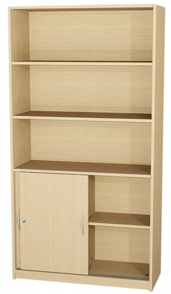 Schrank, BxHxT 120x190x50 cm oben: offen, 2 verstellbare Einlegebödenunten: 2 Schiebetüren, abschließbar, Segmentbogengriffe ( RM 128 mm ) verchromt matt, Mittelwand, 2x1 verstellbarer Einlegeboden