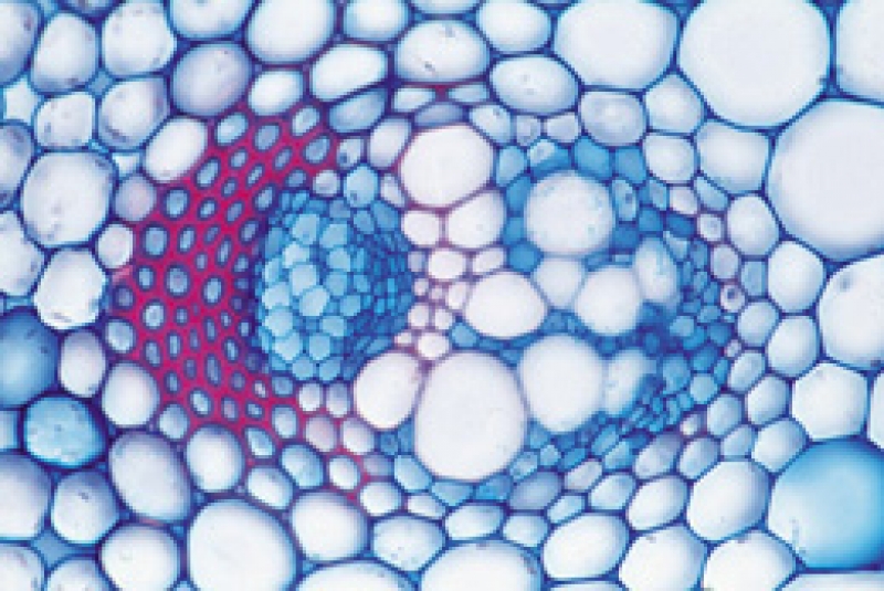 49(c). Triticum, Weizen, Stamm (Halm) einer Graspflanze, quer. Zentrale Markhöhle, ringförmige Anordnung der Leitbündel