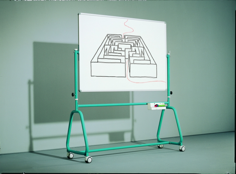 Die Tafelblätter sind stufenlos drehbar und feststellbat im Bereich von 360°, die Tafelschreibfläche ist doppelseitig nutzbar.