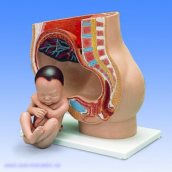 Das Modell dient dem Studium der Lage des Kindes kurz vor der Geburt; der Fetus ist herausnehmbar.
