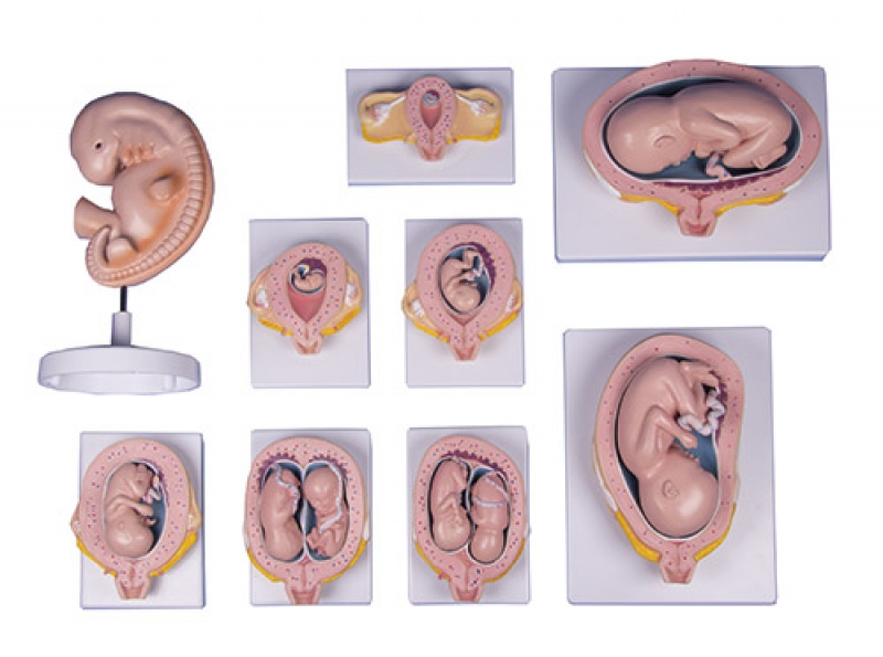 Diese Serie wurde in Zusammenarbeit mit einer deutschen Hebammenschule entwickelt, besteht aus 8 lebensgroßen Einzelmodellen sowie einem vergrößerten Modell und zeigt die fetale Entwicklung von der 4ten Woche bis zur 24 Woche.