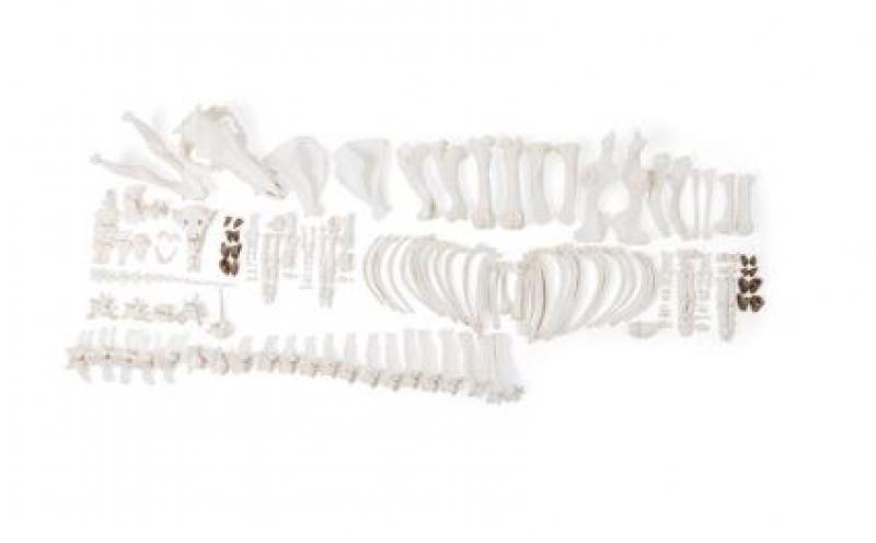 Komplettes und nicht montierte Skelettknochen ohne Vorbohrungen und -montage. Kleine Knochen können lose enthalten sein. Es liegt keine Aufbau- oder Montageanleitung bei.