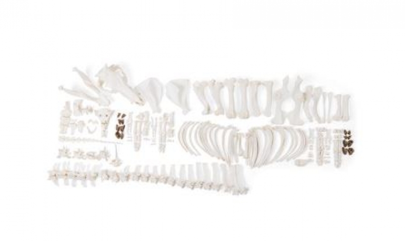 Komplettes und nicht montierte Skelettknochen ohne Vorbohrungen und -montage. Kleine Knochen können lose enthalten sein. Es liegt keine Aufbau- oder Montageanleitung bei.