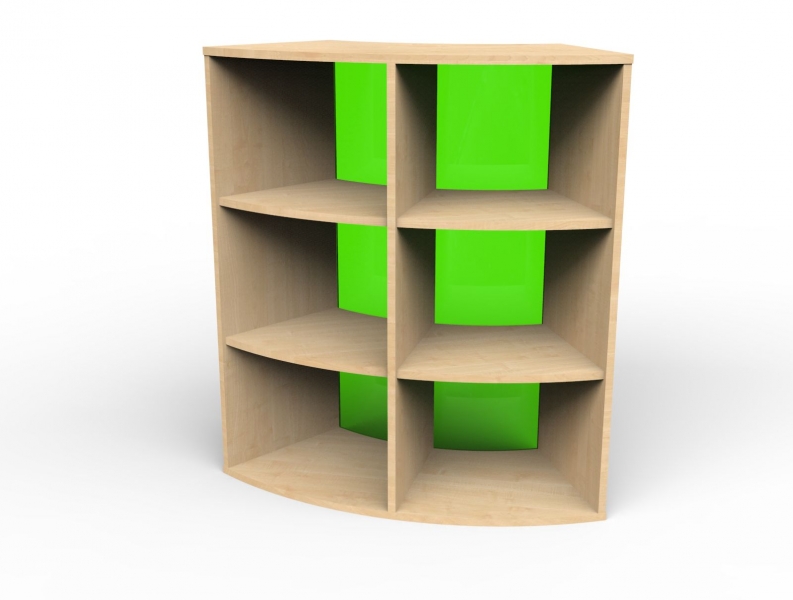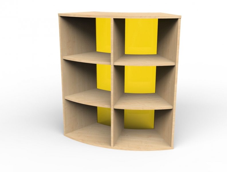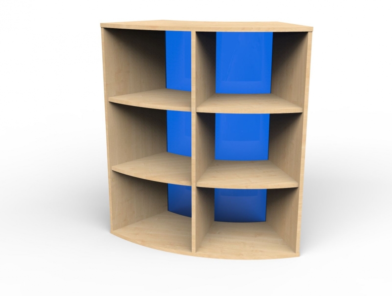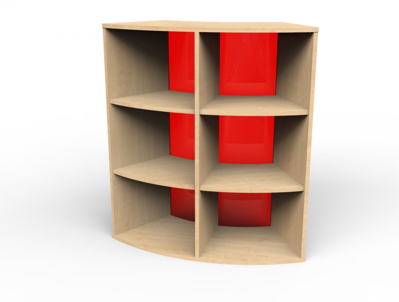 Sechstelkreisschrank H= 119,1 cm Außenradius ca. 102 cm Innenradius ca. 63 cm Gesamttiefe 40 cm Fachinnenmaß. BxHxT ca. 48,2 (28,7)  x34,1x37,6 cm Acrylwand im Innenradiusmit 6 offenen Fächern