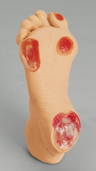 Chronische Druckgeschwüre betreffen zumeist ältere Personen, deshalb wurde dieser Senioren-Druckgeschwür-Fuß entwickelt, um die Reinigung und Versorgung von Druckgeschwüren in verschiedenen Stadien zu unterrichten.