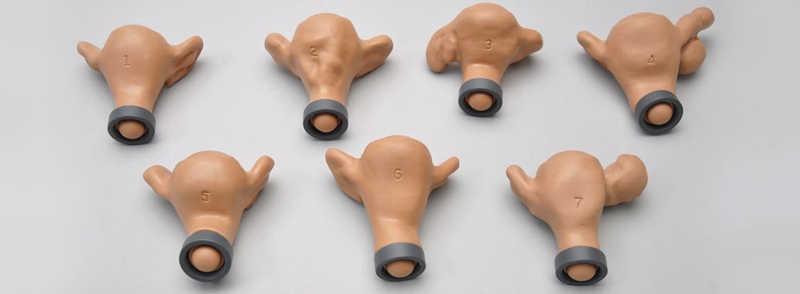 Set mit sieben Uteri, normal und mit externen Pathologien zur Verwendung mit dem Gynäkologischer Simulator (Artikelnummer: R10183).
