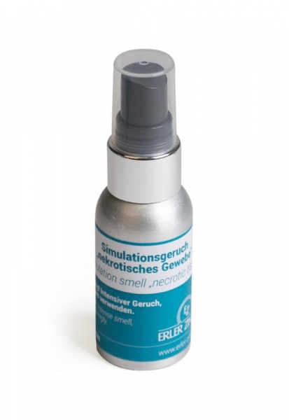 SprĂŒhflĂ€schchen Ã¥ 30ml mit in der Pflege hĂ€ufig auftretendem Geruch von nekrotischem Gewebe.