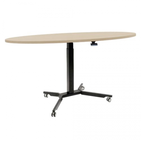B/H/T: 130x70-111x80 cm, fahrbarer und höhenverstellbarer Tisch in Ovalform mit Vollkernplatte